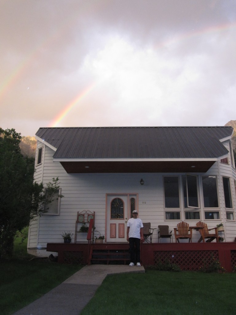 This is a picture of the author’s father under a double rainbow at his home in Ouray, CO. I wanted to match the theme of “bi” in the title. It was this picture of me double fisting beer.