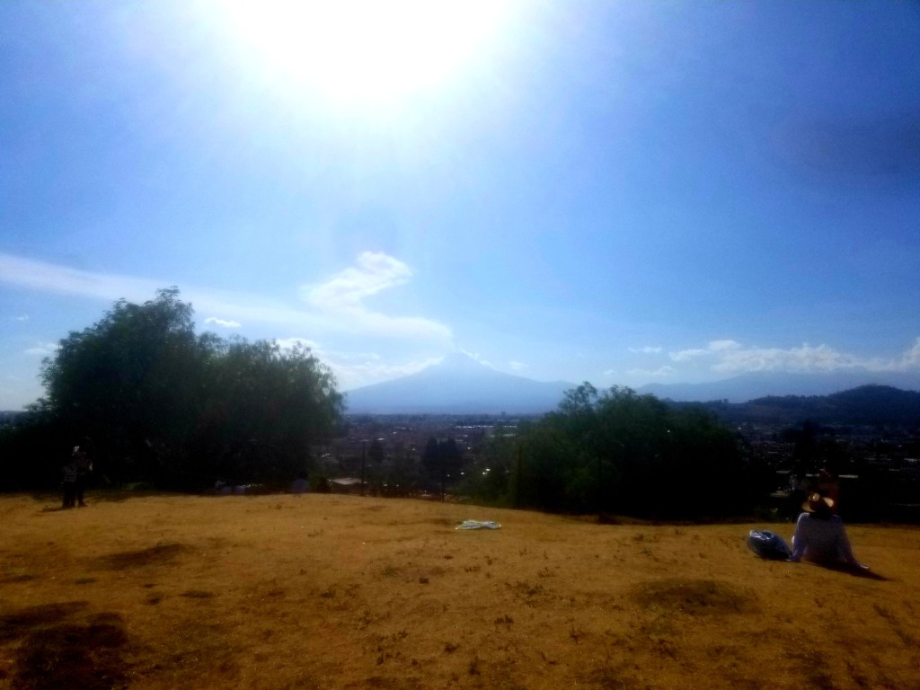 This is Popocatepetl, the volcano I mentioned in this story. I took it from the Cholula pyramid.